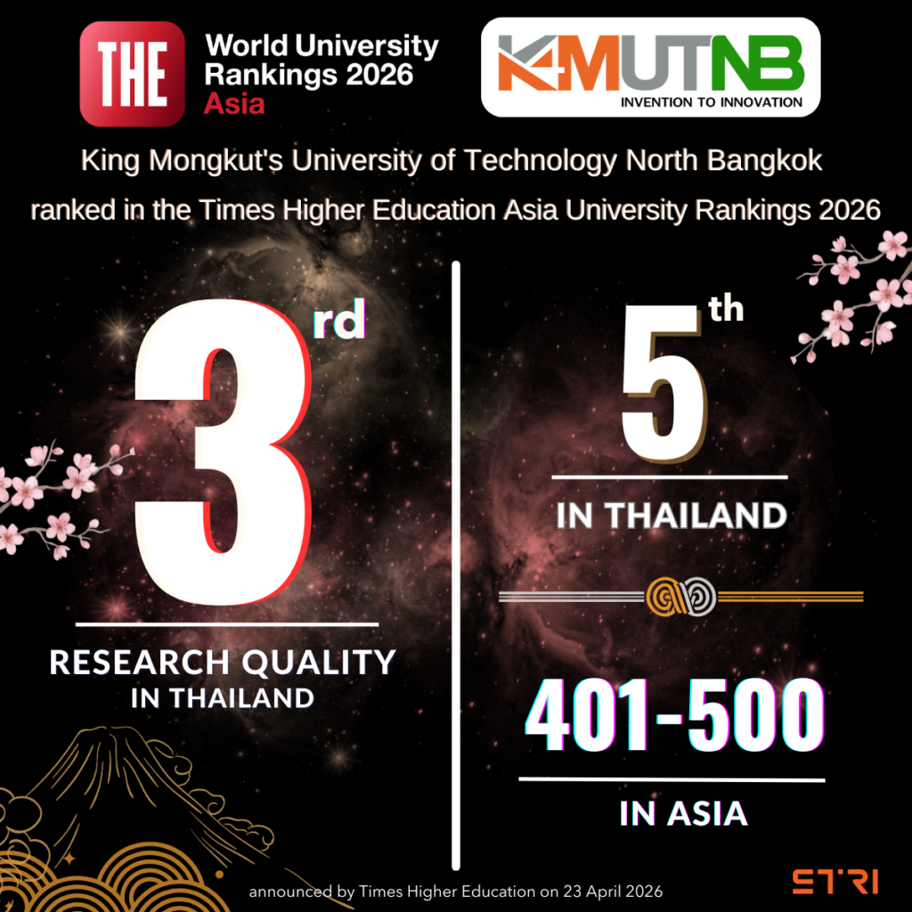 มหาวิทยาลัยเทคโนโลยีพระจอมเกล้าพระนครเหนือ (มจพ.) ขยับขึ้นรั้งอันดับ 5 ม.ไทย คงอันดับ 401-500 ของเอเชีย ในการจัดอันดับมหาวิทยาลัยชั้นนำแห่งเอเชีย โดย THE Asia University Rankings 2026
